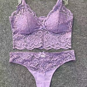 This lingerie set is made of stretch micro fabric and lace, which is comfortable, soft, and breathable, that feels like you’re wearing nothing. It can be an accommodating all-day. The triangle bra is adorned with delicate lace trims along the deep V-neckline. Paired with matching hipsters that also feature the same lovely floral print pattern….
