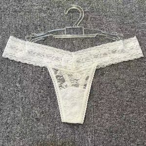 The lace thongs are made of full stretchy lace and 100% cotton crotch. The composition of lace is 90% polyamide, 10% elastane. Make sure the thong is fairly durable and Stretchy. The lace Thong doesn’t indent into your skin, so comfortable and soft you’d forget you were wearing them.