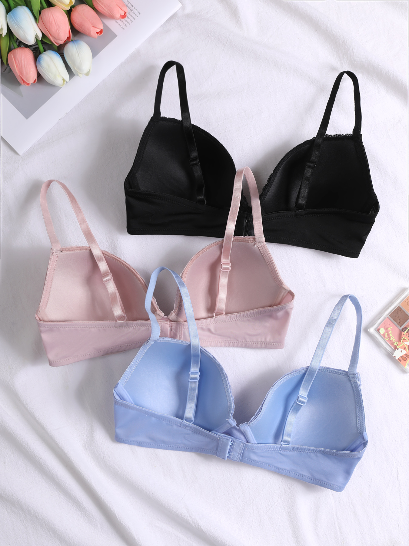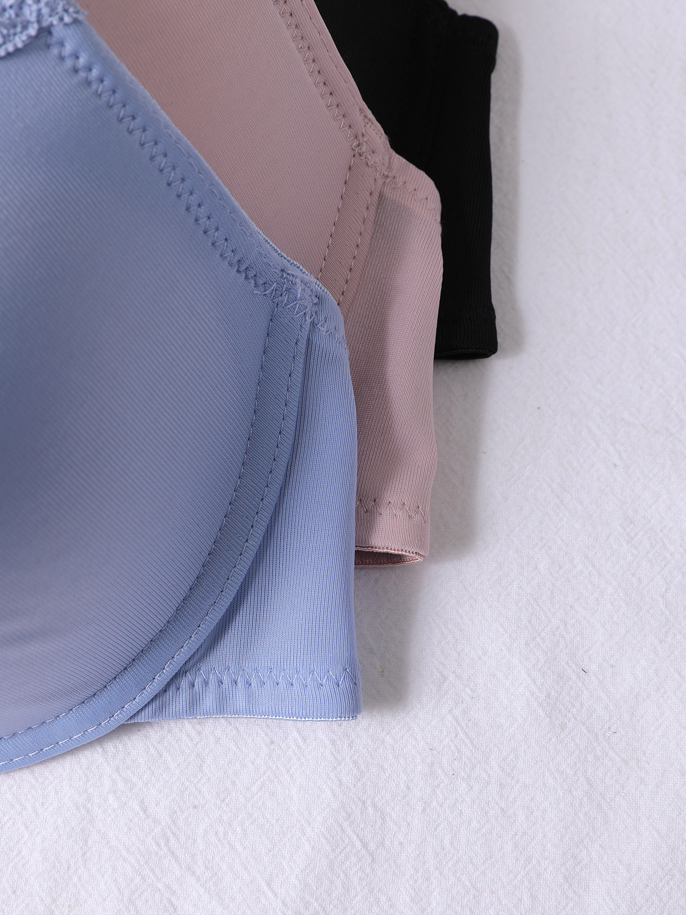 These bras are made of microfiber and lace and the composition is 90% polyamide and 10% elastane. The C-cups and underwire design add shaping and support. Delicate lace trims adorn the cup edges. which makes it elegant and charming. Adjustable satin shiny straps allow for a customized fit.
